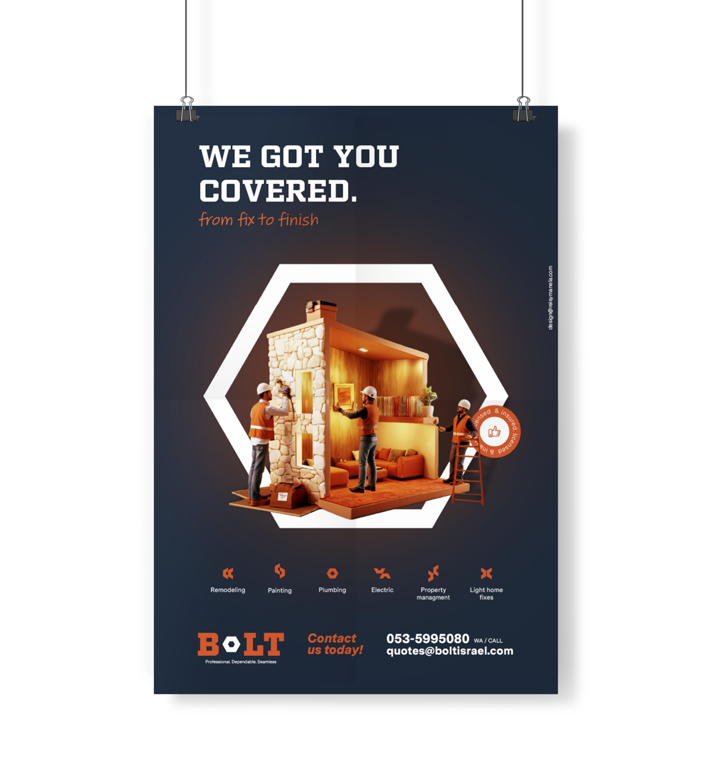 Anyone who’s lived in Israel for a while knows that service is not one of its society’s strong points. There’s so much else you can’t help but love here! This maintenance business needed to communicate precision and dependability from first glance. The hexagonal logo beyond being an actual bolt, immediately signals structure and reliability. Clean angles suggest exact measurements, tight tolerances, and no corners cut. The bold, industrial typography clearly tells you this isn’t a fly-by-night handyman operation. Using this geometric consistency across all touchpoints, from business cards to the poster’s dramatic hexagonal frame, creates visual confidence before you even read the copy. Deep navy establishes trustworthiness and bold, burnt orange accents add energy without compromising professionalism. In a market where customers expect delays and budget overruns, the style and look are the message: we actually show up and always over deliver. The geometry doesn’t just look good — it builds belief in their competence.